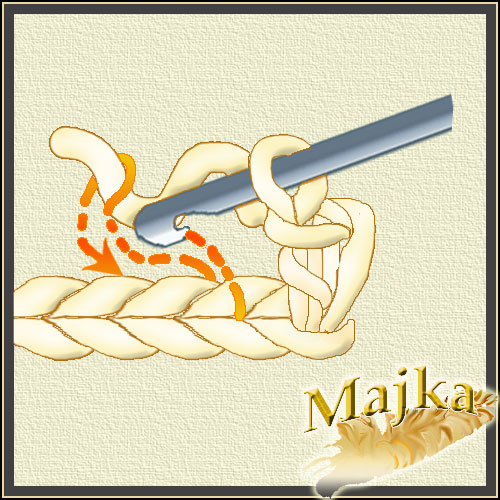 Nabieramy nitkę na szydełko i wkłuwamy je w następne oczko łańcuszka i znowu przeciągamy przez nie nitkę itd... Aż do skończenia rzędu.