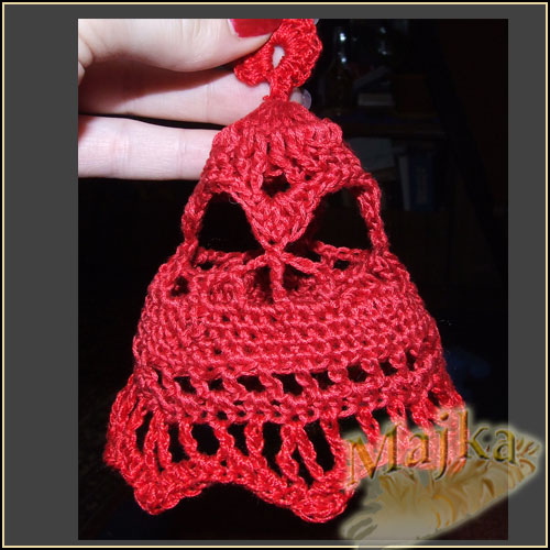 VI rząd: Po skończeniu poprzedniego rzędu cofamy się oczkami ścisłymi wstecz, tak by rozpocząć rząd od wierzchołka wachlarzyka.